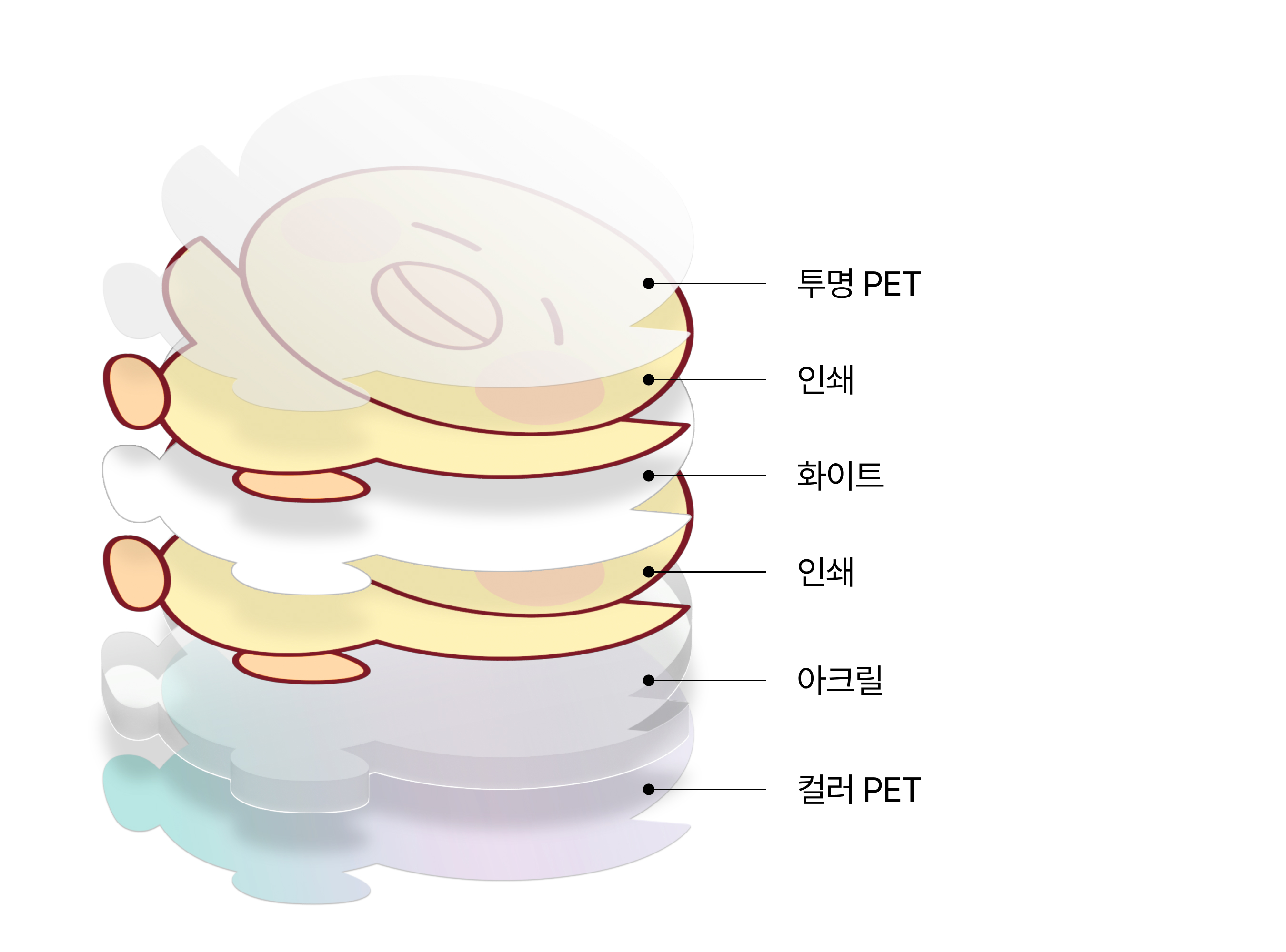 단면편집(2layer)단면편집 시, 뒷면은 화이트로 제작됩니다.(부분 화이트 가능) |