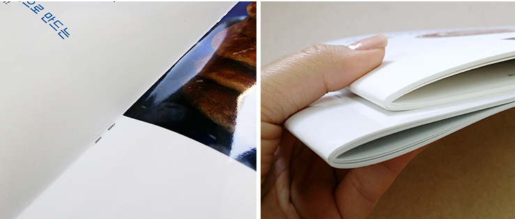 번들거리는 유광의 필름 코팅으로