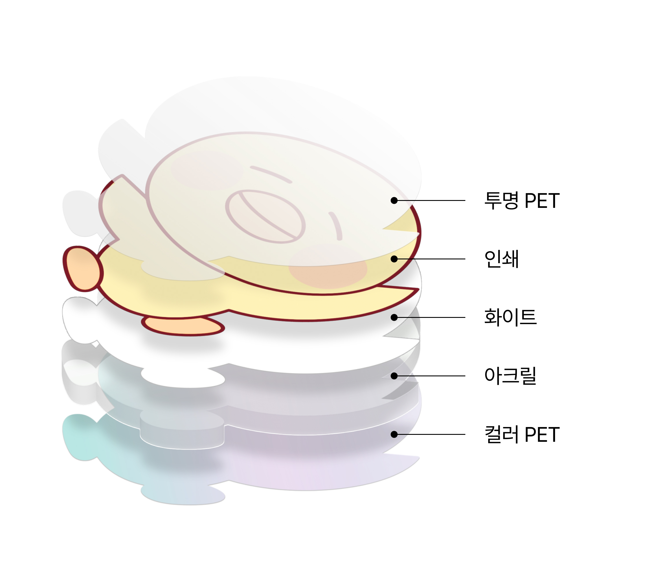 [화이트 밀림] 컬러 인쇄와 화이트 인쇄 사이 0.3mm 정도 차이가 발생할 수 있습니다. |